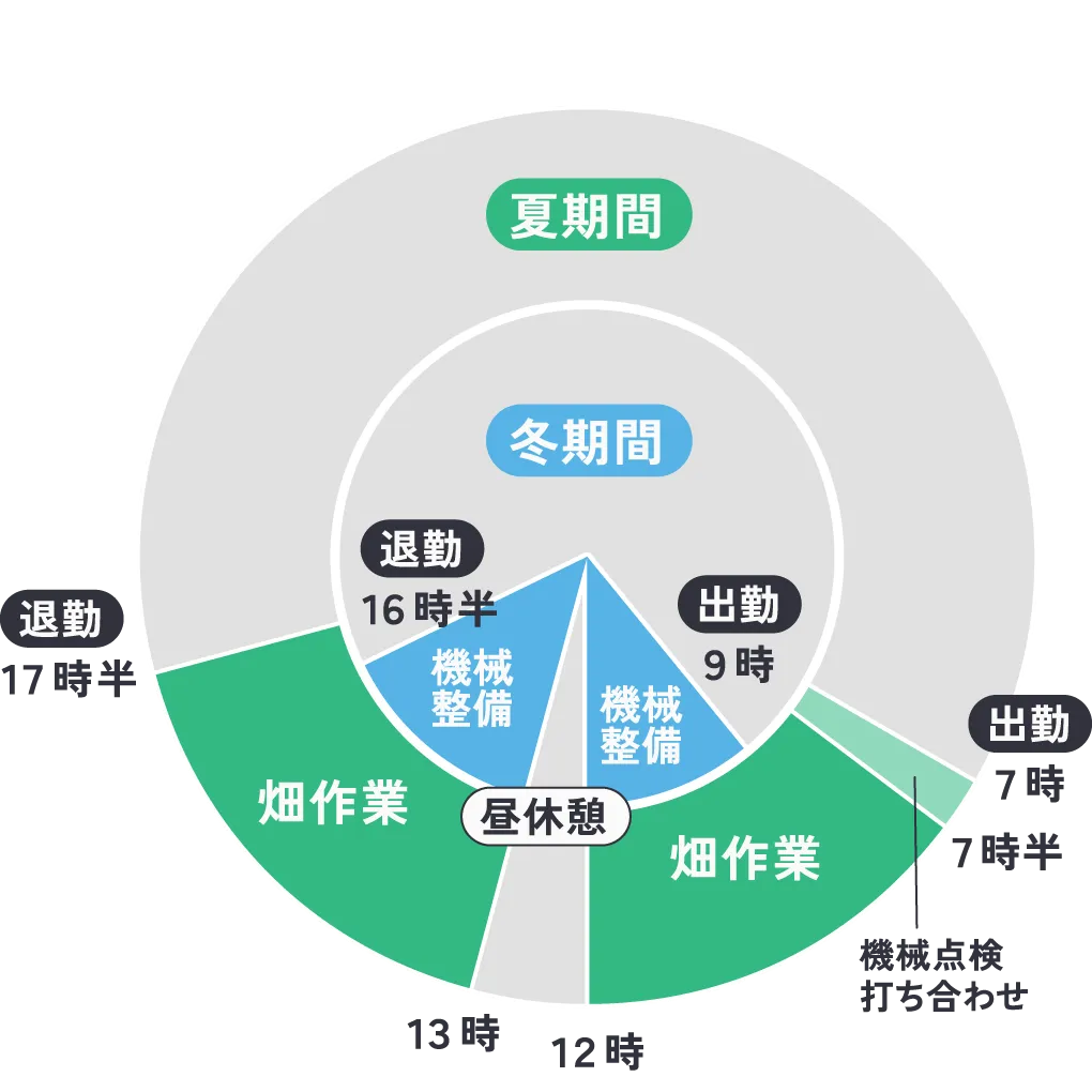冬季の勤務時間は9時~16時半で、会社勤務と同じような働き方ができます。