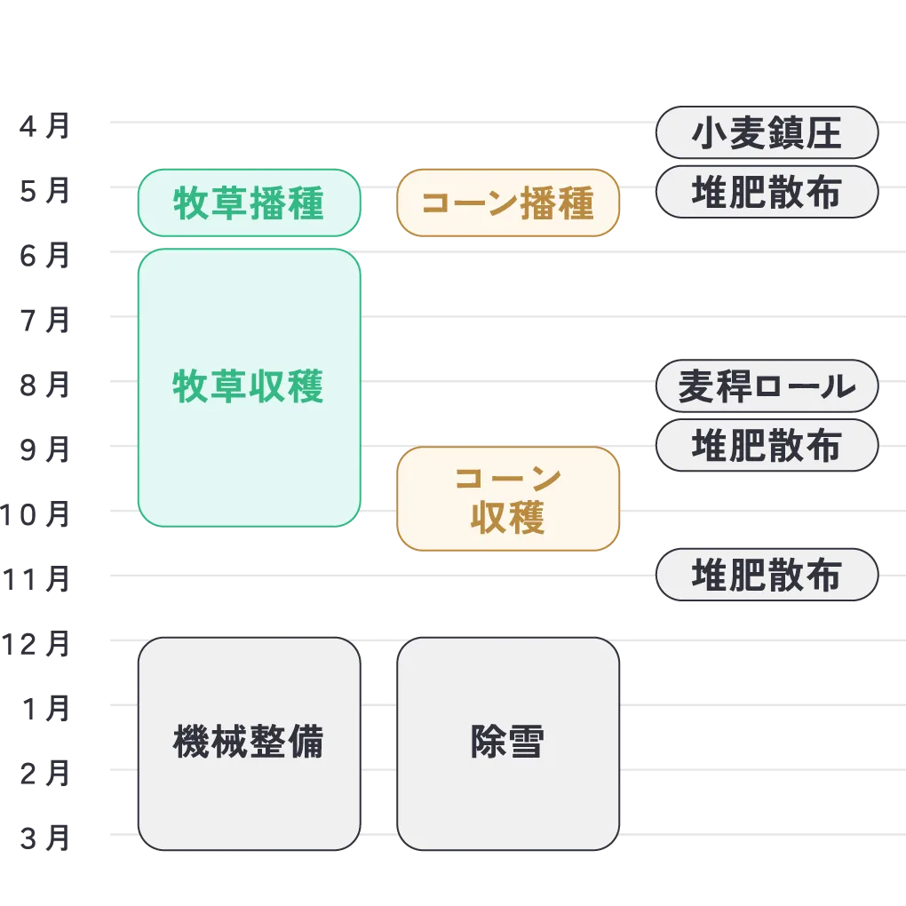 畜産農家からの委託を受けて、大型トラクターやハーベスターを用いて「牧草」や「デントコーン」の作付けや収穫、貯蔵作業をするのが主な仕事です。